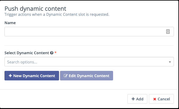 Once the relevant filters are in place, you can add the Campaign action of ‘Push Dynamic Content’ which triggers Mautic to send the relevant content to the Contacts matching the filters.