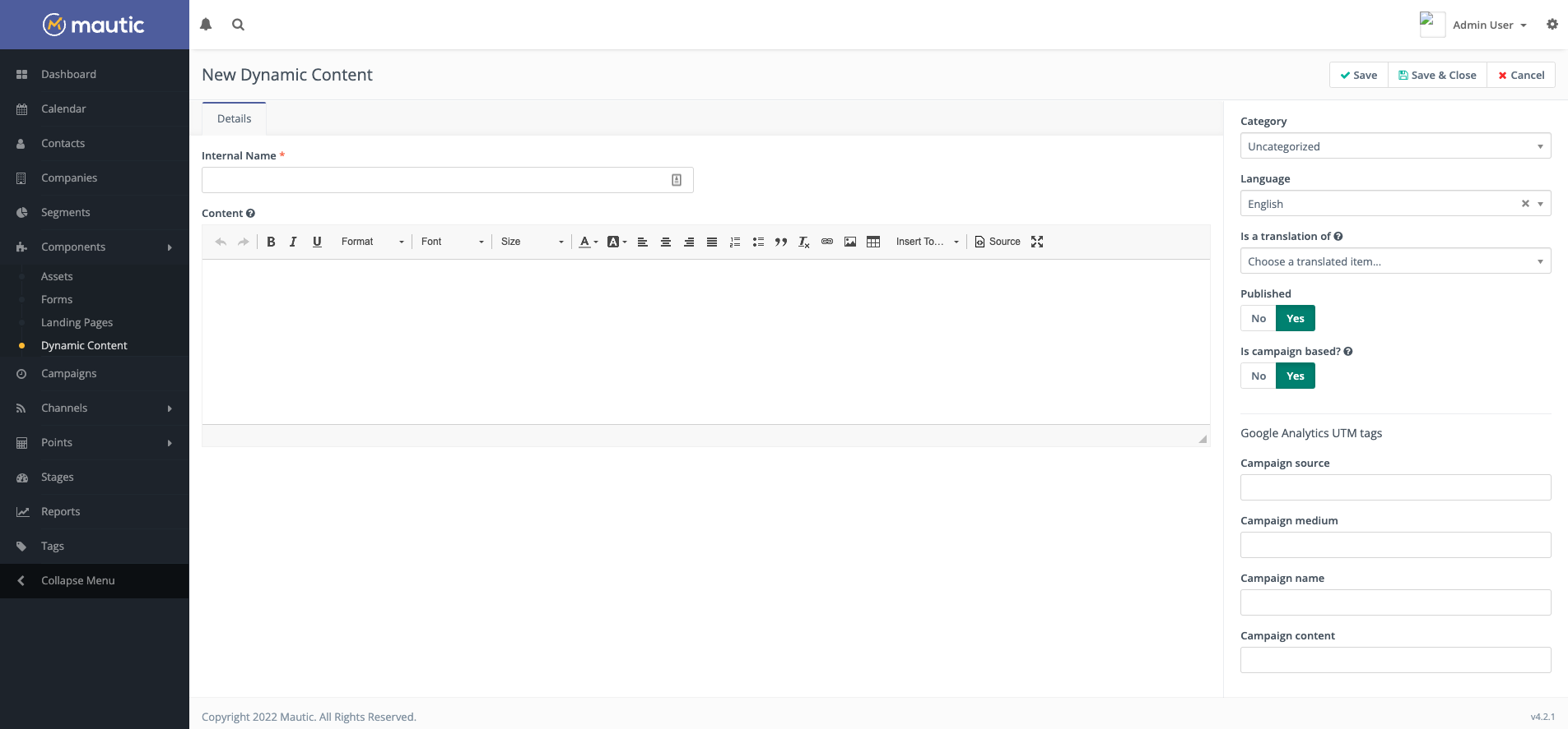 Mautic provides both Campaign-based and filter-based Dynamic Web Content. To create either type: