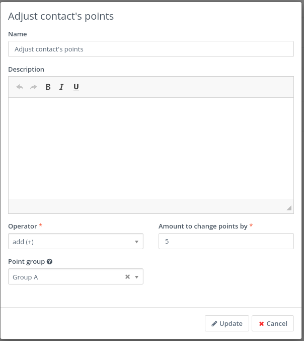 You can change Contact’s Points within a Points Group by using Points Actions.