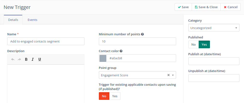 Enter a name and a description for the Group and click the “Save & Close” button to create the Group.