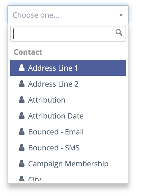 Once you have selected the field you can then choose the type of operation to perform. These vary depending on the way you wish to filter your Contacts.